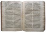 7.FURETIÈRE (Antoine). Dictionnaire Universel, contenant generalement tous les Mots françois Tant vieux que modernes, et les termes de toutes les sciences et des arts… divisé en deux Tomes. La Haye et Rotterdam, Arnout et Reinier Leers, 1690. 3 volumes in-4, reliure de l’époque veau brun, dos à 5 nerfs orné. Reliure usagée (coiffes arasées, coins usés, mors plus ou moins fendus, épidermures plus importantes sur les coupes et mors du t. 2). T. 1 : (16)-1059 pp. T. 2 : (4)-829 pp. T. 3 : (4)-866 pp. Qq. déchirures marginales et pliures, nom caviardé sur les pages de titre. Qq. erreurs de pagination sans manque, inversion de cahier au t. 3. Traces de mouillure avec piqûres grises, qq. ff. brunis. Sans le portrait. Cette première édition parue en 2 volumes in-folio ou 3 volumes in-4 deux ans après la mort de Furetière (1620-1688) est «… sans contredit le meilleur dictionnaire français qui eût paru jusqu’alors…». Réimprimé en 1701 dans une édition revue et augmentée par Basnage de Beauval, il connut de nombreuses augmentations jusqu’à la publication en 1771 en 8 volumes in-folio, que l’on désigne sous le nom de Dictionnaire de Trevoux. Brunet II, 1425.