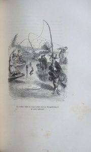 24.[FORGUES (Émile Daurand), pseudonyme de Old Nick)]. GRANDVILLE, OLD NICK. Petites Misères de la Vie Humaine. Nouvelle Édition augmentée de nombreuses vignettes têtes de pages, culs-de-lampe, etc. Paris, Garnier Frères, s. d. In-4, reliure demi-chagrin rouge à coins de vélin, dos à 5 nerfs orné, tête dorée. Qq. frottements sur les mors, nerfs et coupes. Faux-titre, Portrait de Grandville, Titre-frontispice, titre, iii, Titre-annonce, 520 pp. et 50 planches hors texte. Qq. rousseurs et traces de doigt. La première édition parue chez Fournier en 1843 ne comptait que 48 planches hors texte selon Vicaire III, 756 et Carteret III, 471 qui ne signalent pas cette « Nouvelle édition ».