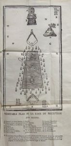 25.FRANC-MAÇONNERIE. Recueil d’ouvrages : •[GUILLEMAIN de SAINT-VICTOR (Louis)]. Recueil Précieux de la Maçonnerie Adonhiramite. Contenant les trois Points de la Maçonnerie Ecossoise, le Chevalier de l’Orient, et le vrai Rose-Croix, qui n’ont jamais été imprimés… Enrichi d’un Abrégé de l’Histoire de ces Grades. Par un Chevalier de tous les Ordres Maçoniques. Philadelphie, chez Philarethe, 1803. •[PÉRAU (Gabriel-Louis Calabre)]. L’Ordre des Francs-Maçons Trahi, et leur Secret révélé. Amsterdam, Et se trouve dans toutes les Loges des vrais Amis réunis, s. d. 3 volumes in-16, reliure demi-basane rouge, dos lisse orné, chiffre E. M. en pied. Plats légèrement insolés, coins émoussés. Recueil … : T. 1 : 180 pp. et un tableau dépliant. T. 2 : 180 pp. Manque la page de titre au t. 1, 1 f. déchiré au t. 1, manque l’angle inférieur avec 10 lignes de texte. Ordre … : T. 1 : xix-122 pp. , 1 pl. recto-verso et 2 grandes planches dépliantes : Plans de la Loge de réception d’un Maître / d’un apprentif-compagnon. Angle supérieur déchiré touchant le dessin de la seconde planche, restauré. L’ouvrage est paru pour la première fois en 1745 sous le titre Les secrets de l’Ordre franc-maçon dévoilés. Œuvre du prieur Gabriel-Louis Pérau (1700-1767), l’ouvrage explique les rites de la franc-maçonnerie. Caillet II, 4847 et III, 8506 ss.