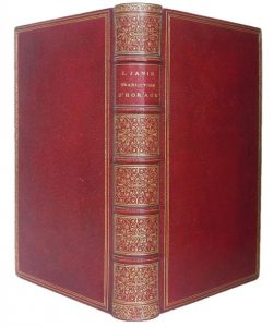 28.[Horace]. JANIN (Jules). Les Œuvres d’Horace. Traduction nouvelle par M. Jules Janin. 2e édition. Paris, Hachette, 1861. In-12, reliure (signée Capé) maroquin rouge, dos à 5 nerfs richement orné de fers au pointillé, triple filet en encadrement sur les plats, tranches dorées, roulette intérieure. Frontispice (portrait d’Horace par Auguste Saint-Aubin), (4)-xxiii-379-(1) pp. Rares rousseurs. Ex-libris monogrammé (Stern graveur). L’édition originale de cette traduction est parue l’année précédente. Vicaire IV, 168. Bel exemplaire parfaitement relié par Capé (1806-1867).