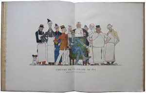 53.BOFA (Gus, Gustave Blanchot dit). Chez les Toubibs. Texte et dessins de Gus Bofa. Paris, La Renaissance du Livre, s. d. (1917). Grand in-folio, cartonnage éditeur, dos muet, premier plat illustré en couleurs d’un dessin de Gus Bofa. Qq. rousseurs. Couvertures et dos conservés. 62-(2) pp. et 4 pp. hors texte en couleurs. Rousseurs. Illustrations à pleine page et dans le texte. Edition originale de cet album humoristique sur les hôpitaux et les blessés de la guerre de 14 pendant laquelle Gus Bofa fut lui-même grièvement blessé à la hanche et aux jambes. On joint le menu du 3 octobre 1924 au restaurant Gauclair offert par « Les Amochés » - 13e Dîner offert à Gus Bofa pour fêter sa Légion d’Honneur - signé par les membres présents parmi lesquels : Gus Bofa, Maitrejean, Louis Icart, Stahli, Dreville …