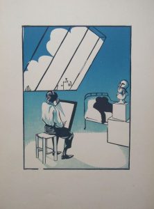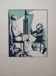 62.HERMANN-PAUL (René Georges Hermann PAUL dit). Conseils Obscurs ou Quarante Ans d’Inexpérience. Paris, Léon Pichon, 1925. In-folio, en feuillets, dans une chemise éditeur demi-toile à coins anthracite, plats et rabats papier kraft (deux rabats déchirés sans manque), étiquette imprimée sur le plat, liens d’attache. 3 ff., 13 planches protégées par une serpente légendée, 2 ff. Recueil complet des 13 estampes gravées sur bois par Hermann-Paul et imprimées en deux tons (différentes couleurs), tiré à 150 exemplaires numérotés et paraphés par l’auteur, tous sur vélin à la forme des papeteries d’Arches, dont celui-ci.