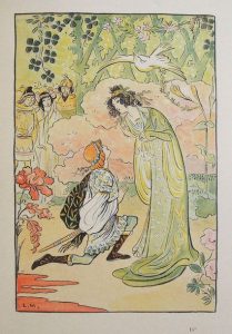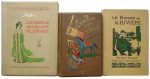 107.ENFANTINA. Réunion de 3 volumes en cartonnage éditeur : •CHASSANG (Maurice). Le Merle au blanc Plumage. Images en couleurs par Lucien Métivet. Paris, Félix Juven, s. d. In-4, cartonnage éditeur percaline beige (qq. légers frottements), décor polychrome sur le premier plat, plats biseautés, tranches dorées. 126-(1) pp. Illustrations en noir et en couleurs dans le texte et à pleine page. Très bon état. •PONSOT (Georges). Le Roman de la Rivière. Images de Georges Delaw. Paris, Crès, 1923. In-4, cartonnage éditeur percaline beige (légères salissures), décor d’un moulin sur le plat. (6)-227-(2) pp. et 10 planches hors texte. •POUVILLON (Emile). Le Cheval Bleu. Dans les feuilles - Le marchand de lis - Menine… Contes. Edition illustrée par Bouisset, Bourdelle, Marre, Myrbach & H. Pille. Paris, Lemerre, s. d. (1888). In-8, cartonnage éditeur (Engel reliure) percaline chamois, décor polychrome au dos et sur le plat (plaque de Souze), plats biseautés, tranches dorées. Petits frottements sur les mors et coins. Frontispice, (6)-316 pp. et 8 planches hors texte. Rousseurs présentes sur tout le volume.