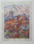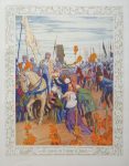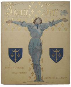 110.FUNCK-BRENTANO (Frantz). Jeanne d’Arc. Illustrations de O. D. V. Guillonnet. Paris, Boivin, s. d. (1912). In-folio, cartonnage éditeur (Engel) percaline crème, décor représentant Jeanne d’Arc en armure, les bras en croix, sur le premier plat, tranches dorées. Percaline un peu salie, accroc à la coiffe supérieure. (4)-83-(1) pp. Ouvrage entièrement monté sur onglet. Très bon état intérieur. Édition originale illustrée d’aquarelles de Octave Denis Victor Guillonnet (1872-1967) reproduites en chromotypogravure à pleine page dans un encadrement chaque fois différent.
