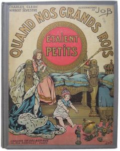 113.[JOB]. CLERC (Norbert) et SEVESTRE (Norbert). Quand nos Grands Rois étaient Petits. Illustrations en noir et en couleurs de Job. Paris, Delagrave, 1913. In-4, cartonnage éditeur percaline grise, grande illustration de Job en couleurs sur le plat supérieur. 48 pp. et 8 planches en couleurs hors texte. Illustrations en noir dans le texte. Édition originale de cet album racontant des anecdotes de l’enfance de quelques grands personnages de l’histoire : Berthe au grand pied, Saint Louis, Jeanne d’Arc, Henri IV, François Ier, Louis XIV, Louis XV, Marie-Antoinette, Joséphine, Napoléon.