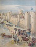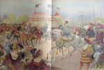 125.[ROBIDA]. TOUDOUZE (Georges G.) et ROBIDA (Albert). Francois 1er (Le Roi Chevalier). Paris, Boivin et Cie, 1909. Grand in-4, cartonnage éditeur percaline beige à grand décor polychrome sur le plat supérieur, titre doré en long au dos. Qq. frottements et petites salissures. (4)-ii-80-(2) pp. Bon état intérieur. Édition originale de ce bel album entièrement monté sur onglet, magnifiquement illustré de grandes aquarelles en couleurs (chromotypogravure) de Robida, la plupart à pleine page et deux à double page.