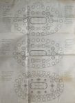 141.VIARD, FOURET (Hommes de Bouche.). Le Cuisinier Royal, ou l’Art de faire la Cuisine, la Pâtisserie et tout ce qui concerne l’Office, pour toutes les fortunes. Douzième édition, augmentée de 1100 articles, et ornée de 9 planches pour le service des tables depuis 12 jusqu’a 60 couverts. Suivi d’une notice sur les vins, par M. Pierhugue, Sommelier du Roi. Paris, J. N. Barba, 1825. In-8, reliure demi-basane fauve, dos lisse orné. Petites galeries de vers sur le mors du premier plat avec manque dans l’angle de la coiffe inférieure, dos craquelé, coins émoussés. (6)-540-xxviij pp. et 3 planches dépliantes représentant 9 services de tables. Légère trace de mouillure sur les premiers ff. La première édition est parue sous le titre Le Cuisinier Impérial en 1806. Vicaire 860.