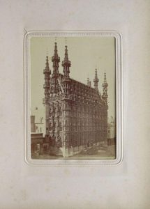 190.FRANCE, ITALIE. Album de 40 photographies. Fin XIXe s. In-4, reliure chagrin brun, initiales A. E. sur les plats. Qq. frottements. Album (monté sur onglet) de 40 tirages albuminés (env. 15 x 10 cm) montés sur carton, la plupart avec cachet du photographe, dont : Rouen (3) par Neurdein Place de la Bourse Paris, Louvain par Société Royale Belge de Photographie, Pau (3) par E. Neurdein éditeur, Dijon (3) par Th. Schahl, Hyères (3) par Poullan Photographe Bd des Palmiers, Compiègne par Photo A. Dupré, Pierrefonds par A. Dupré, Palais de Fontainebleau par E. Dontenvill. Phot. A. Paris, La Roche qui pleure par E. Dontenvill. Phot. A. Paris, Nîmes (3) avec texte au dos par F. Fescourt, Marseille, Gênes (2) par C. Degoix, Turin (5) par Giacomo Broci à Florence et 1 par Giacomo Batt. Maggi à Turin, Chambéry par Vve Perrot & Tochon Broci à Florence, Vues de Loches, Bruxelles (2)…