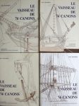 194.BOUDRIOT (Jean). Le Vaisseau de 74 Canons. Traité Pratique d’Art Naval. Collection Archéologique Navale française. Grenoble, Editions des Quatre Seigneurs, 1973-1977. 4 volumes in-4, reliure éditeur toile bleue, titre en blanc au dos et sur les plats, jaquettes illustrées conservées. Nombreuses figures dans le texte et planches dont plusieurs dépliantes, en noir et en couleurs (uniformes et costumes). Très bon état. Édition originale. Les tomes 1 à 3 concernent La construction du vaisseau (matériaux, charpente, accastillage, articles des maîtres, mâture, voilure…), le t. 4 est relatif à L’équipage et La conduite du vaisseau.