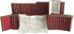 202.BRUCE, NORDEN, COOK, MACARTNEY, BARROW. Bibliothèque Portative des Voyages. Traduite de l’anglais par MM. Henry et Breton. Paris, Veuve Lepetit, 1817. 49 volumes in-12, dont 7 volumes d’atlas, reliure demi-maroquin rouge à grain long, dos lisses, roulette ornée en encadrement sur les plats. Qq. légers frottements sur les coupes de 2 volumes. Bel état général. •T. 1 à 9 : BRUCE (James). Voyage aux sources du Nil. T. 9 (atlas) : Une carte dépliante et 22 planches par Tardieu l’aîné. •T. 10 à 13 : NORDEN (Frederik Ludvig). Voyage d’Égypte et de Nubie. T. 13 (atlas) : Une carte dépliante (n° 1) et 22 pl. numérotées 2 à 23, la plupart à double page, par Tardieu l’aîné. •T. 14 à 28 : COOK (James). Premier, Second, Troisième Voyage autour du Monde. T. 18, 23, 28 (3 vol. d’atlas) : 3 cartes dépliantes et 22+27+24 soit 73 pl. par Louis Brion de la Tour. •T. 29 à 35 : MACARTNEY (Lord Georges). Voyage en Chine et en Tartarie … T. 35 (atlas) : Une carte dépliante et 22 planches. •T. 36 à 42 : BARROW (John). Voyage en Chine. T. 42 (atlas) : 21 pl. dont 2 rehaussées. •T. 43 à 49 : TAVERNIER (Jean-Baptiste). Voyage en Perse… T. 49 (atlas) : Une carte dépliante et 23 planches (dont pl. 13 bis). Qq. rousseurs plutôt peu marquées sur l’ensemble des volumes, très présentes sur un cahier du t. 22 et sur plusieurs cahiers des t. 36 à 40. Jolie édition en petit format des principaux « grands voyages » des XVIIe et XVIIIe siècles. Rare exemplaire complet de ses 49 volumes dont 8 volumes d’atlas, dans sa reliure d’époque en belle condition.