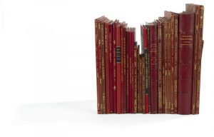 demi-maroquin, chagrin ou toile rouge à la bradel, certains par Franz. Elle se compose des livres suivants : BOUVENNE (Aglaüs). Théodore Chassériau. Souvenirs et indiscrétions. Paris : A. Detaille, (1884). In- 4. Extrait du Bulletin des Beaux-arts, tiré à 115 exemplaires et augmenté de 5 planches inédites. UN DES 5 EXEMPLAIRES SUR JAPON enrichi d’un envoi autographe de l’auteur à Arthur Chassériau. [Suivi de] BOUVENNE. Théodore Chassériau 1819-1856. [Paris], 1887. Tiré à part de la revue L’Artiste. Envoi de l’auteur à Arthur Chassériau. — Autre exemplaire de Théodore Chassériau. Souvenirs et indiscrétions de Bouvenne, sur papier vélin. — BAIGNÈRES (Arthur). Thédore Chassériau. [Paris : Gazette des Beaux-Arts, 1886]. In- 4. Extrait de la Gazette des Beaux-Arts de mars 1886. — MONTESQUIOU-FEZENSAC. Autels privilégiés. Paris : Eugène Fasquelle, 1898. In- 12. Chapitre 14 seul, intitulé Alice et Aline (Une Peinture de Chassériau), dédié à Arthur Chassériau. — BÉNÉDITE (Léonce). Théodore Chassériau et la décoration de la Cour des Comptes. Paris, (1898). In- 4. Extrait de la revue Art et Décoration de janvier 1898. Exemplaire enrichi d’un envoi autographe de l’auteur à Arthur Chassériau. — RENAN (Ary). Théodore Chassériau et les peintures du palais de la cour des comptes. Paris, 1898. Extrait de la Gazette des Beaux-arts du 1er février 1898. Ex-dono autographe d’Arthur Chassériau à Monsieur Chauffrey. — ROGER MARX. Théodore Chassériau et son œuvre de graveur. Paris, 1898. In- 4. Extrait du n°6 du 15 juin 1898 de la revue L’Estampe et l’affiche. — TSCHUDI (Hugo von). Die Jahrhundert-Ausstellung der französischen kunst. München, 1900. In- 4. Numéro du 1er octobre 1900 de la revue Die Kunst Für Alle. — MARCEL (Henry). La Peinture française au XIXe siècle. Paris : A. Picard & Kaan, (1903). In- 12. Partie sur Chassériau seule. — VAILLAT (Léandre). Théodore Chassériau. Paris, 1907. In- 4. Extrait du n° 28 de juillet 1903 de la revue L’Art et les artistes (2 ex.). — BURCHARD (Ludwig). Tagebuchnotizen Th. Chassériaus. Berlin : verlag Bruno Cassirer, (1913). In- 4. Extrait de Kunst und Künstler. — VAILLAT (Léandre). L’Œuvre de Théodore Chassériau. Paris, 1913. In- 4. N° 130 d’août 1913 de la revue Les Arts (2 ex.). [Suivi de] VAILLAT. Théodore Chassériau peintre orientaliste. — ROGER MARX. Maîtres d’hier et d’aujourd’hui. Paris : Calmann-Lévy, (1914). In-18, (3 ff.), pp. (243)-276. Seules les parties sur Théodore Chassériau ont été reliées. — LARAN (Jean). Un Portrait inédit par Chassériau. Paris, 1916. In- 8. Extrait des Archives de l’Art français, Mélanges J. Guiffrey, nouvelle période, tome VIII, 1914. Envoi de l’auteur à Arthur Chassériau et LAS de l’auteur jointe. — VAUDOYER. Les Portraits de Th. Chassériau. [Paris, 1919]. In- 4. Extrait de Feuillets d’art. — JAMOT (Paul). Le Don Chassériau au musée du Louvre. Paris, 1920. In- 4. Extrait de la revue L’Art ancien et moderne. Exemplaire enrichi d’un envoi autographe de l’auteur à Arthur Chassériau. — JAMOT (Paul). La “Vénus marine” de Chassériau. Paris, 1920. In- 4. Extrait de la revue L’Art ancien et moderne. — VAUDOYER. Théodore Chassériau. [Paris], 1924. Extrait de la revue L’Art et les artistes (2 ex.). — GUIFFREY (Jean) - LINZELER (André). Les Peintures décoratives de Chassériau à l’ancienne cour des comptes. Paris, 1926. In- 4. Numéro spécial de la revue des Beaux-arts de septembre 1926 (3 ex.). — GOODRICH (Lloyd). Théodore Chassériau. New York, 1928. Extrait de la revue The Arts d’août 1928. — GILLES DE LA TOURETTE. Peintures et dessins algériens de Thédore Chassériau. Paris, 1931. In- 4. Extrait de la revue L’Art et les artistes. Sont joints à ces 26 volumes deux recueils, l’un regroupant 4 textes extraits de revue sur les peintures du palais de la cour des comptes, enrichi notamment de 8 photographies originales de la fin du XIXe siècle montrant les ruines du palais, l’autre réunissant des documents, articles de journaux et reproductions d’œuvres sur le thème Théodore Chassériau. Peintre Orientaliste. Ce second recueil contient en tête un portrait de l’artiste imprimé sur parchemin et un titre peint. À part quelques usures d’usage, les exemplaires sont très bien conservés. Les couvertures sont pour la majorité présentes et l’on trouve l’ex-libris héraldique d’Arthur Chassériau dans la plupart des volumes.