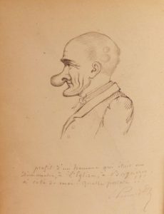 Un recueil de dessins. Bagnère-de-Bigorre, juillet 1886. In-8, demi-basane brune (Reliure de l'époque). Recueil de 28 dessins et croquis, certains coloriés, contenant des costumes, paysages de montagne, monuments, etc., de la région de Bagnère-de-Bigorre. Un dessin au crayon est joint volant.