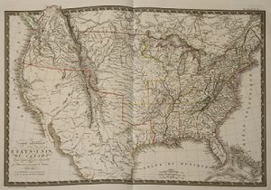 Atlas de cartes. Paris, chez l'auteur, 1825-1826. In-folio, demi-basane verte, dos lisse orné de filets dorés (Reliure de l'époque). Cet atlas renferme 8 cartes à double page des États-Unis, du Canada, du Mexique, des Antilles, de la Colombie, la Guyane, le Pérou, le Chili et le Brésil, gravées d'après Adrien-Hubert Brué, avec les liserés coloriés et le timbre sec des Cartes encyprotypes du fonds de l'auteur.