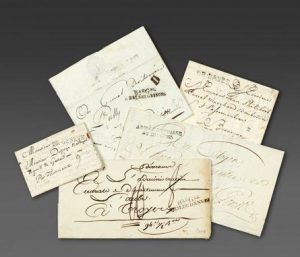 internés en Suisse en 1871, portant les vignettes violettes ‘’Gratis’’. Joint également, un ensemble d’oblitérations sur timbres-poste détachés ou sur fragments.