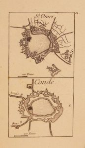 Recueil des fortifications, forts et ports de mer de France lavé au pinceau. Paris, Le Rouge, s.d. [v. 1760]. In-8, cartonnage de papier marbré, dos anciennement recouvert de papier marbré (Reliure de l'époque). Première édition de cet atlas entièrement gravé, composé d'un titre-frontispice, de 89 planches en noir présentant chacune un ou deux plans de villes fortifiées, et de 2 ff. de table.