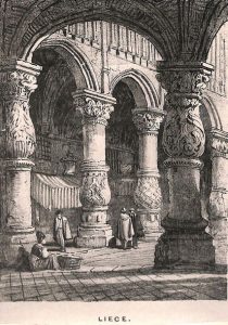 Sketches at Home and Abroad. Hints on the Acquirement of Freedom of Execution and breadth of effect in Landscape Painting. Londres, Nattali, 1844. In-folio, demi-chagrin rouge avec coins sertis d'un filet doré, dos orné, tranches dorées (Reliure de l'époque). Recueil de 51 lithographies tirées par Hullmandel et Walton d'après Samuel Prout, dont un titre, deux vignettes et 48 vues à pleine page représentant l'Angleterre (8), l'Écosse (2), Normandie (12), France (4), Belgique et Pays-Bas (2), le Rhin (5), la Moselle (2), le Maine (2), Allemagne (5) et Italie (5).
