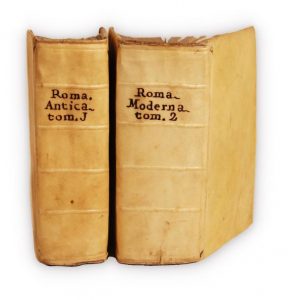 Descrizione di Roma antica [– moderna] formata nuovamente con le autorità di Bartolomeo Marliani, Onofrio Panvinio, Alessandro Donati, e Famiano Nardini. Rome, Fausto Amidei, 1739. 2 volumes in-8, vélin rigide (Reliure de l'époque). Nouvelle édition, faite sur celle de 1727, illustrée de nombreuses cartes, vues et figures gravées in et hors texte.