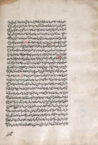 Kitāb Madārik al-aḥkām fī sharḥ Sharāʼiʻ al-Islām de Muḥammad b. 'Alī Ḥusaynī 'Amilī. Encre rouge et noire sur papier, reliure en maroquin. Iran, XVIIIe siècle. En écriture naskh à l’encre rouge et noire, texte réparti sur 25 à 26 lignes par page il comporte de nombreuses notes marginales.