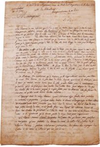 Lettre autographe signée adressée à Monseigneur (?). A bord de La Mignonne dans la rade de l'Argentière, le 6 juin, 1771. 4 pp. in-folio. Belle et longue lettre de Joseph-Bernard de Chabert (1724-1805), de la famille des Chabert de Cogolin, auteur du fameux Voyage fait par ordre du Roi en 1750 et 1751, dans l'Amérique septentrionale, publié en 1753.