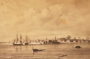 Voyage à Surinam. Description des possessions néerlandaises dans la Guyane. Bruxelles, Société des Beaux-Arts, 1839. In-folio, demi-maroquin bleu nuit avec coins sertis d'un double filet doré, plats de percaline d'origine à motif floral conservés, dos orné d'origine remonté, tranches mouchetées, étui moderne (Reliure moderne). Édition originale de « l'un des plus beaux livres sur la Guyane hollandaise », selon Chadenat.
