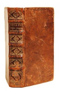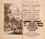 Relation des voyages et des découvertes que les Espagnols ont fait dans les Indes occidentales. Avec la relation curieuse des voyages du Sieur de Montauban, capitaine des flibustiers, en Guinée l'an 1695. Amsterdam, J. Louis de Lorme, 1698. In-12, veau moucheté, dos orné, tranches jaspées (Reliure de l'époque). Seconde édition de cette importante relation traduite par l'abbé de Bellegarde, augmentée de L'Art de voyager utilement de Chevremont. Un catalogue de l'éditeur fait suite à la Relation.