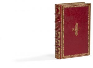 dorés en encadrement et faisceau du licteur doré au centre sur les plats, dos à nerfs orné, dentelle dorée intérieure, tranches dorées, couverture conservée (Richardot). Rare catalogue des exposants français ayant participé à l’exposition universelle de 1905 qui se déroula à Liège. Exemplaire sur papier parcheminé fin, qui, bien que non justifié, fut spécialement imprimé pour le président de la République ÉMILE LOUBET (1838-1929). Il est sur le même papier et relié par le même relieur que l’exemplaire nominatif du catalogue de l’exposition de 1904. Il porte en outre sur les plats le faisceau du licteur, symbole de la République Française. Belle reliure de l’époque de Richardot. Rousseurs sur la couverture, le premier et le dernier feuillet. Provenance : Émile Loubet, aux emblèmes de la République Française.
