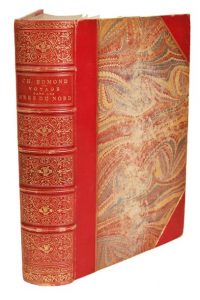 Voyage dans les mers du Nord à bord de la corvette La Reine Hortense. Paris, Michel Lévy, 1857. Grand in-8, demi-maroquin rouge avec coins, filets dorés, dos orné, tête dorée (Reliure de l'époque). Édition originale, illustrée de nombreux dessins in et hors texte gravés par Karl Girardet d'après les aquarelles de Giraud et d'Abrantès.