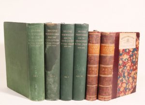 Report of the second Norwegian artic expedition in the “fram” 1898-1902. Kristiana, Brogger, 1907. 4 volumes.