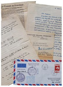 Lettre adressée à Paul-Émile Victor, 47, avenue du Maréchal Fayolle, Paris 16e, France, portant les cachets suivants : Expéditions Polaires Françaises, Missions Paul-Émile Victor , Station Dumont d’Urville (Terre Adélie) ; Terres Australes et Antarctiques Françaises, District de Terre Adélie ; XXIIe Expédition Antarctique Française en Terre Adélie 1971-1973 ; Midwinter 22 juin 1972, jour le plus court de l’année et premier jour de l’hiver ; 2 cachets postaux Terre Adélie TAAF 22- 6 1972 ; avec 2 signatures manuscrites de Paul-Émile Victor et une du chef d’expédition.