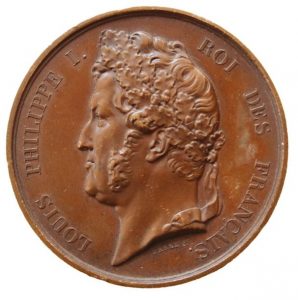 Médaille ronde en bronze, diamètre 51 mm. Avers : portrait de Louis-Philippe roi des Français gravé par Barre. Revers : Voyage autour du monde, Exploration du pôle austral, Corvettes l’Astrolabe et la Zélée, Mr. Ducampe de Rosamel, Vice-Amiral, Ministre de la Marine, Mr Dumont d’Urville, Capitaine de Vaisseau, Commandant de l’expédition, Mr. Jacquinot, Commandant la Zélée.