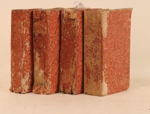 Reliures usagées avec manques aux dos, galeries de ver touchant le texte dans les t. V et VII, tranches empoussiérées.