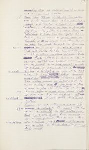 de ce roman dialogué paru pour la première fois en 1920. Il se compose de 338 pages écrites à l’encre violette sur papier ligné. Le texte présente de nombreuses ratures et corrections. Il est divisé en 16 actes alors que la version imprimée en comporte 15. La dernière page est signée par l’auteur qui a porté également la date du “15 janvier 1919”. Dos légèrement passés, quelques frottements d’usage. Provenance : François Boucher, avec ex-libris.