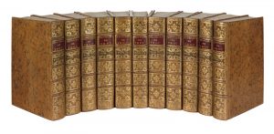 Histoire universelle. La Haye, Henri Scheurleer, 1740. 11 volumes in-4, basane marbrée, double filet, dos orné, tranches marbrées (Reliure de l'époque). Un portrait-frontispice orne cet ouvrage du grand bibliophile Jacques-Auguste de Thou, dont les premiers livres avaient paru en latin en 1604. Il fut attaqué vivement par l'esprit ligueur et voulut différer aussitôt la publication de l'ouvrage en français, qui en aurait augmenté le nombre des détracteurs.
