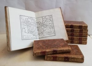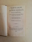 BARTHELEMY (J.-J.).— Voyage du jeune Anacharsis en Grèce, vers le milieu du IVe siècle avant l’ère vulgaire.— Paris, De Bure l’Aîné, 1790 ; 7 vols. in-8 et atlas in-4, veau fauve marbré, dos dorés et ornés, pièces de titre et de...