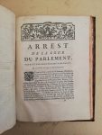 – Arrest de la cour du Parlement… Idem, P.G. Simon, 1774 ; ens. 4 pièces reliées en un vol. in-4, veau fauve raciné, pièce de titre sur le dos orné et dor. (Rel. de l’époque).