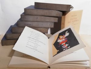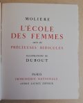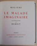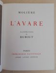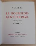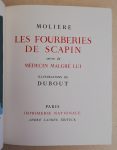 DUBOUT (A.) et MOLIÈRE. — Œuvres. - Tartuffe - L’école des femmes - Le malade imaginaire - Le bourgeois gentilhomme - Les fourberies de Scapin - Les femmes savantes - L’avare - Le misanthrope.— Paris, Sauret, 1953-1954-1955 ; 8 vols, in-4...