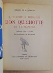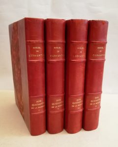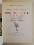 DUBOUT (Al.) et CERVANTES (M.). — L'ingénieux hidalgo Don Quichotte de la Manche, traduction de Louis Viardot, illustrations de Dubout. — Paris, Sous l'emblème du secrétaire, 1938 ; 4 vol. pet. in-4, demi-chag. rouge à coins, auteur et titres...