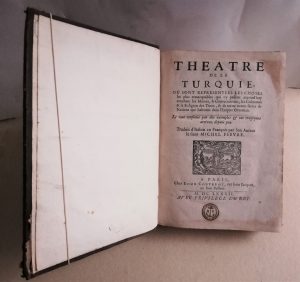 FEBVRE (M.). — Théâtre de la Turquie, où sont représentées les choses les plus remarquables qui s’y passent aujourd’hui… — Traduit d’italien en françois par son auteur. — Paris, Couterot, 1682 ; in-4, veau brun, dos à nerfs orné...