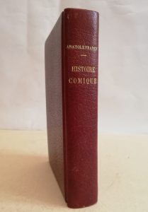 FRANCE (A.). — Histoire comique. — Paris, Calmann-Lévy, 1903 ; in-8, Bradel, mar. bordeaux, auteur et titre dor. sur le dos, fil. dor. int., non rogné, couv. et dos, (Brisson).