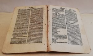 Texte en caractères gothiques, à deux colonnes.