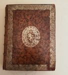 LE JAY (G. Fr.). — Bibliotheca rhetorum praecepta et exempla complectens. — Paris, Dupuis, 1725 ; in-4, veau fauve marbré, pièce de titre sur le dos à nerfs orné et dor., cadre de guirlande dor. et armoiries dor. au centre des plats (Rel. de...