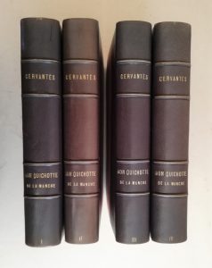LEMARIE et CERVANTÈS (M. de). — L'ingénieux hidalgo Don Quichotte de La Manche.— Illustrations de Henry LEMARIÉ. — Paris, Les Heures Claires, 1957-1960 ; 4 vols pet. in-4, demi-chag. brun à coins, auteur et titre dor. sur les dos à nerfs...