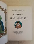 MÉRIMÉE (Pr.). — Chronique du règne de Charles IX. — Paris, G. Crès, « Les Livres Modernes», 1927 ; pet. in-4, demi-chag. havane à coins, auteur et titre dor. sur le dos à nerfs, tête dor. non rogné, couv. (Lambert).