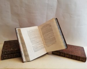 Genève, Barillot, s.d. ; 2 vols. ; ens. 2 ouvrages en 4 vols. in-4, veau brun, dos à nerfs ornés et dorés, pièces de titre et tomaison mar. bordeaux (Rel. de l’époque endommagé pour le second ouvrage).