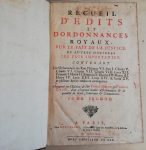 NERON (P.) et GIRARD (E.).— Recueil d’édits et d’ordonnances royaux, sur le fait de la justice et aux matières les plus importantes…— Paris, Montalant, 1720 ; 2 vols. in-folio, veau brun, dos à nerf ornés et dorés, pièces de titre et...