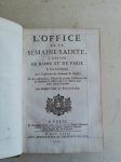 OFFICE DE LA SEMAINE SAINTE (L’) à l’usage de Rome et de Paris, en latin & en françois. — Par Monsieur l’Abbé de Bellegrade.— Paris, Jacques Collombat, 1732 ; in-8, mar. rouge, large bordure de rinceaux et fleurs dor., rectangles central...