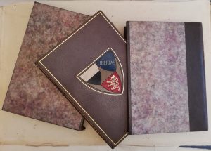 PICCOLOMINI (Enea Silvio).—Histoire de deux amants. — Manuscrit latin de 1444 traduit par Louis Gielly. — Paris, Jules Meynial, 1944 ; in-4, mar. gris-vert, titre dor. sur le dos orné d’un fil. dor. en long, cadre de fil. dor. et blason mos....