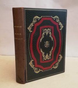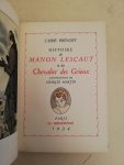 PREVOST (Abbé A.). — Histoire de Manon Lescaut et du chevalier des Grieux, illustrations de Charles Martin. — Paris, La Méridienne, 1934 ; in-8, mar. vert, auteur et titre dor. sur le dos, listels de mar. rouge et fleur. dor. décorant les...