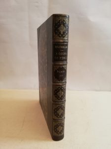 QUATRELLES. — A coups de fusil. — Paris, Charpentier, 1877 ; in-4, mar. marron, à coins, auteur et titre dor. sur le dos à nerfs orné et dor., tête dor. non rogné (Pagnant).