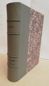 ROBIDA (A.). — DESSIN ORIGINAL à l’encre (500 x 330 mm) sur papier fort signé par Robida et représentant un personnage s’enfuyant dans une forêt, pourchassé par des serpents fantastiques.